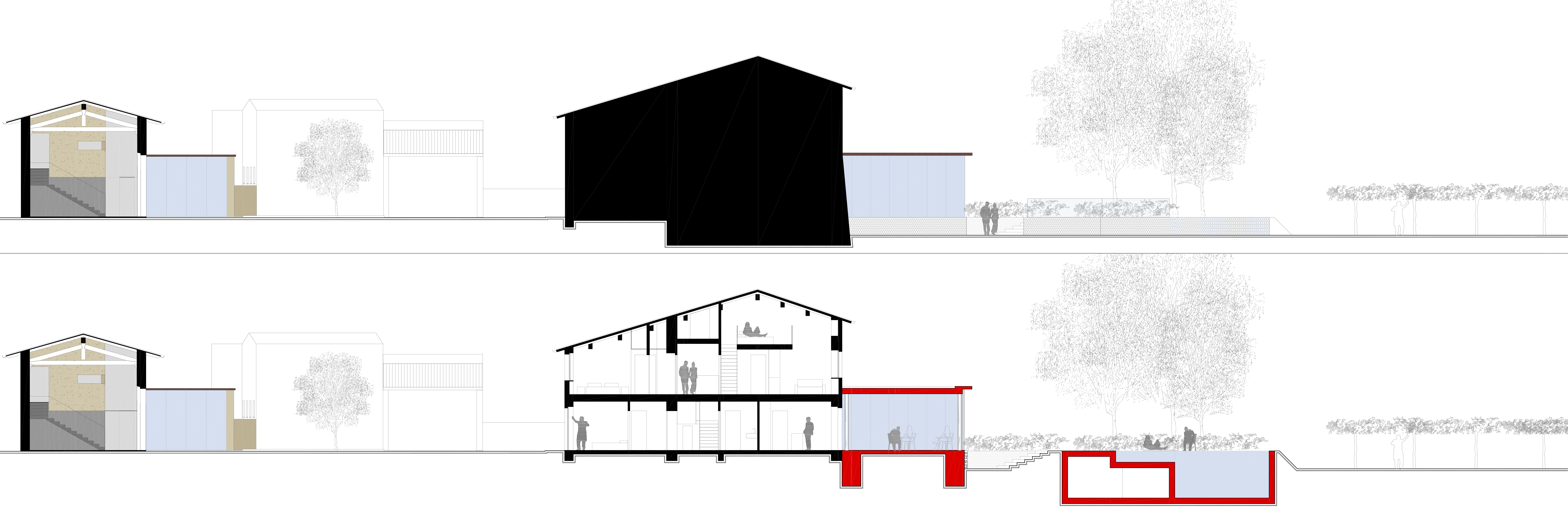 La sistemazione degli spazi esterni prevede la realizzazione di una piscina e di un piccolo ampliamento dove servire le colazioni.